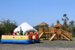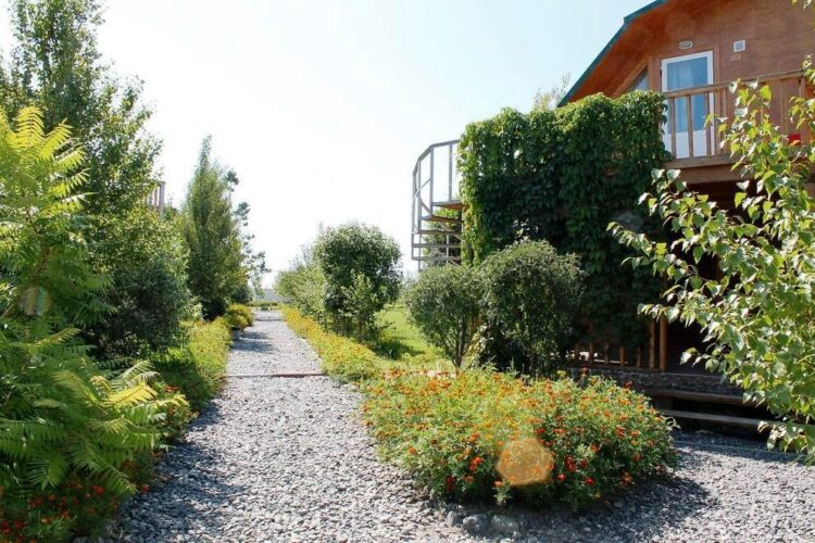 одноэтажные домики. Двухкомнатный номер, с макс. размещением 4 взрослых+2 детей до 5 лет, и 6 взрослых+2 детей до 5 лет.