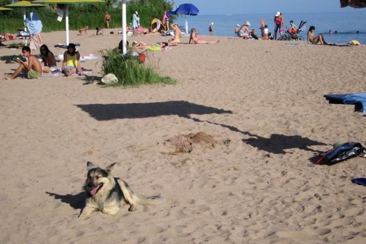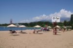 собственный, песчано-галечный, стационарные зонтики, водные развлечения.