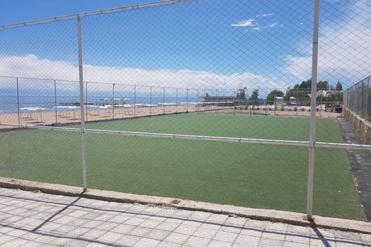 Собственный, песчаный, пирс, шезлонги, зонтики, шатры, лодки, катамараны, бананы, гидроциклы, полеты с парашютом, пляжный футбол.