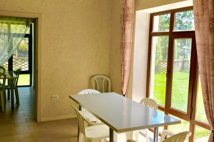 не включено в стоимость проживания. В каждом коттедже и таунхаусе есть оборудованная кухня и зона с мангалом. На территории работают 2 кафе. Рядом с пансионатом продуктовый базар, магазины, кафе.