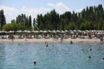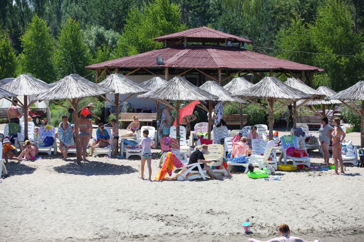 Собственный, песчаный, большое количество развлечений на воде, лежаки, зонтики - бесплатно, пирс.