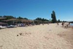 Собственный, песчаный, вход в воду илистый, пирс с лестницами для спуска в воду, шезлонги и зонтики бесплатно, водные горки, площадки для пляжного волейбола и футбола, водные лыжи, гидроциклы, катамараны, банан, катер.