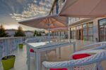 Собственный песчаный пляж с пирсом, оборудованный шезлонгами и зонтами. Большой выбор водных развлечений, пляжный волейбол.