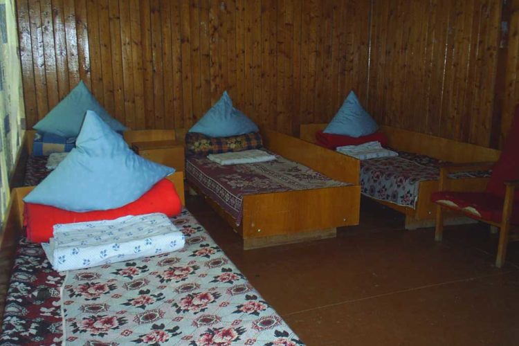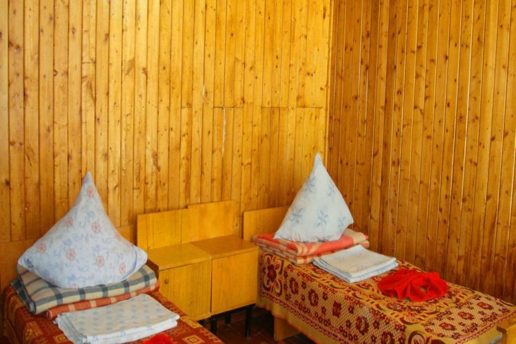 В номере: кровати, тумбочка, туалет и умывальник на 2 номера.